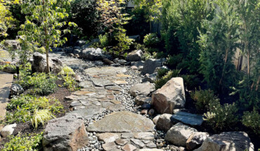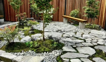 Start with a place that has nothing: bestow it with trees and flowers, and adorn it with an arrangement of stones.